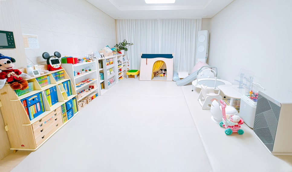 돌 전 아기라면 깨끗한 우리집과 이웃집이 최고라고 생각해요. 구강기라 다 입에 넣기 때문에 장염이나 수족구 위험이 있고요. 잘 걷지 못하거나 잘 넘어지고, 기어 다니기 때문에 바닥 매트도 필요하고요. 면역력도 약해 사람들이 많은 공간에서 감기 같은 질병도 쉽게 옮기 때문이죠. 그리고 외출 한 번 하려면 짐도 워낙 많잖아요. 택시비에 베이비 카페 비용 등 금전적 지출도 아낄 수 있어요. 아이들이 많이 어지르지도 못하고, 뛰어다니지도 못해 뒷정리가 크게 힘들지도 않더라고요. ‘당나귀똥 오감놀이’같은 홈문센(집으로 찾아오는 문화센터 강좌)을 함께 수강하는 것도 좋은 방법이에요. 돌 이후부턴 신체 활동이 워낙 많아지죠. 기본적으로는 키즈카페나 구립 공동육아방, 집 근처 놀이터 같은 곳을 추천하고요. 날씨가 정말 좋을 땐 공원에서 돗자리 깔고 엄마들은 치맥하고 아이들은 간식타임 가지는 것도 기분전환 되고 좋아요. 특히 어린이대공원은 정말 즐길 거리가 많으면서도 저렴하기 때문에 공동육아 하기 가장 좋은 곳이라고 생각해요. 상상나라 아기놀이터나 팔각당 카페는 천국입니다. (웃음) 집에서 교구와 교재를 가지고 엄마표 수업을 하는 것도 좋고요. 엄마들이 직접 수업하기 힘들다면 문화센터에서 ‘트니트니’ 같은 체육 프로그램을 함께 수강하는 것도 좋아요.