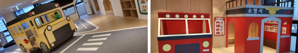 연락처02-921-5801 운영일화~토 (일/월/공휴일 휴관) 회차별 정원25명 이용시간 1회차 10:00~12:00 2회차 13:00~15:00 3회차 15:30~17:30 환경정비시간 12:00~13:00 (이용불가) 15:00~15:30,17:30~18:00 동대문구 꿈자람공동육아방 용신점은 유아 안전체험 특화시설로 꾸며졌어요. 소방안전체험, 교통안전체험, 공사장안전체험, 생활안전체험존 및 MR(Mixed Reality)존으로 구성되어 다양한 놀이를 체험할 수 있어요. 안전체험활동을 통해 안전사고 예방법 및 대처법을 아이들에게 알려줄 수 있어요.