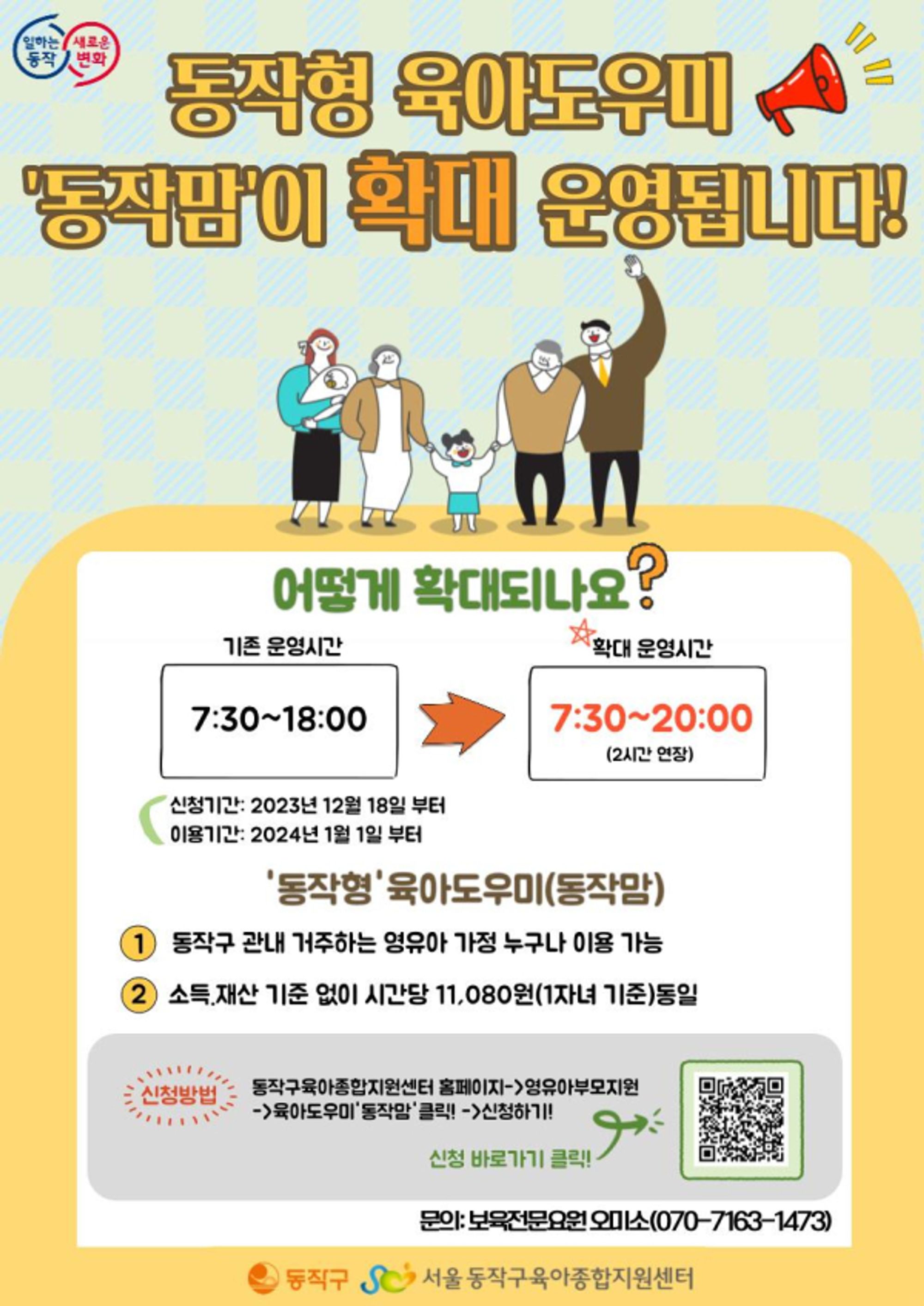 소득 · 재산 제한 기준 없이 12개월 ~ 7세 영유아가 있는 동작구 관내 거주 가정이면 동작구 육아도우미 '동작맘'👩👧👦을 신청할 수 있어요!