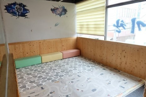이 곳에 있는 놀이방은 푹신한 매트가 깔린 편백나무 놀이방인데요. 피부에도 건강에도 좋은 피톤치드가 솔솔 풍기는 놀이방에서 아이들은 뛰어놀고 어른들은 여유로운 식사를 할 수 있어요.