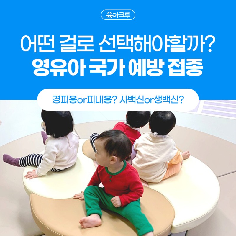 크루님들, 기억 나시나요? 결혼할 때 가구 가전 선택하느라 임신 중에 출산 후 육아용품 선택하느라 잠 못 이루는 밤들이 있으셨던 기억이요 ~ :) 육아도 ‘선택의 연속’이라는 것에 많은 크루님들이 동의하실 것 같아요. 오늘 알려드릴 정보는 부모들이 선택해야 할 ‘영유아 국가예방접종’ 입니다.