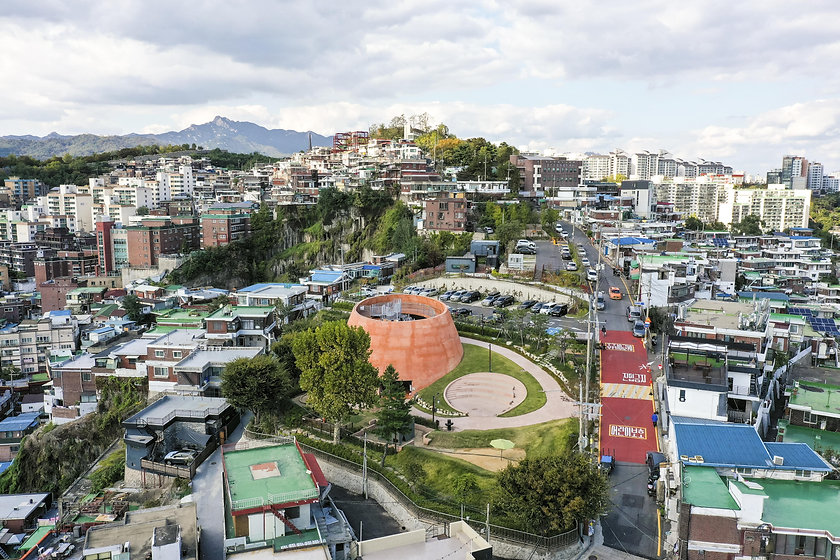 종로구 창신동에 위치한 산마루 놀이터는 창신숭인 도시재생 지역 누리공간 사업의 일환으로 조성된 신개념 창의 놀이터예요. 건물의 모양이 정말 독특하지 않나요? 산마루 놀이터는 봉제산업의 메카인 창신동의 지역적 의미를 되살려 골무 모양으로 만든 것이 특징이라고 해요. 종로구에서 무료로 운영하고 있으며, 대통령상을 받은 창신동의 대표 건물입니다👍