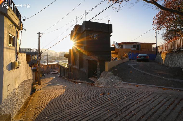 창신동의 골목 풍경인데요. 골목을 따라 쭉 걸어들어가면 오른편에 산마루 놀이터 입구를 발견하실 수 있어요!
