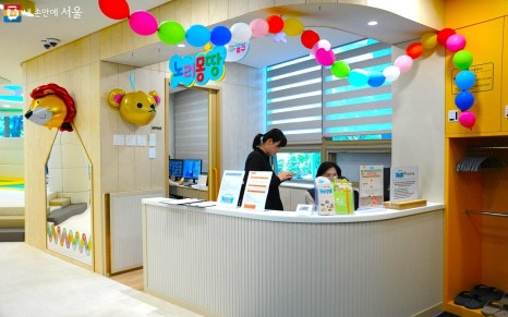 서울형키즈카페 노리몽땅의 한타임 정원은 27명 이며, 보호자 1인당 아동 3인 이용이 가능해요. 반대로 아동 1인당 보호자 2인 이용이 가능하다는 점도 알아두시면 좋을 것 같아요.