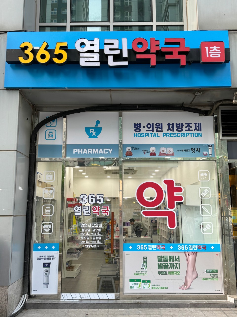 해열제가 집에 똑 떨어졌는데 아이가 갑자기 열이 난다면? 접종열이 오르는데 상비약이 부족하다면? 그럴 때는 걱정말고 365일 문이 활짝 열려있는 연중무휴 약국으로 가보세요!