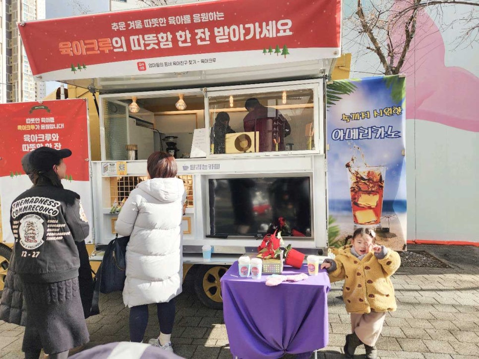 눈보라 휘몰아치는 날, 육아크루 커피차를 만난 1호선 크루님☕️