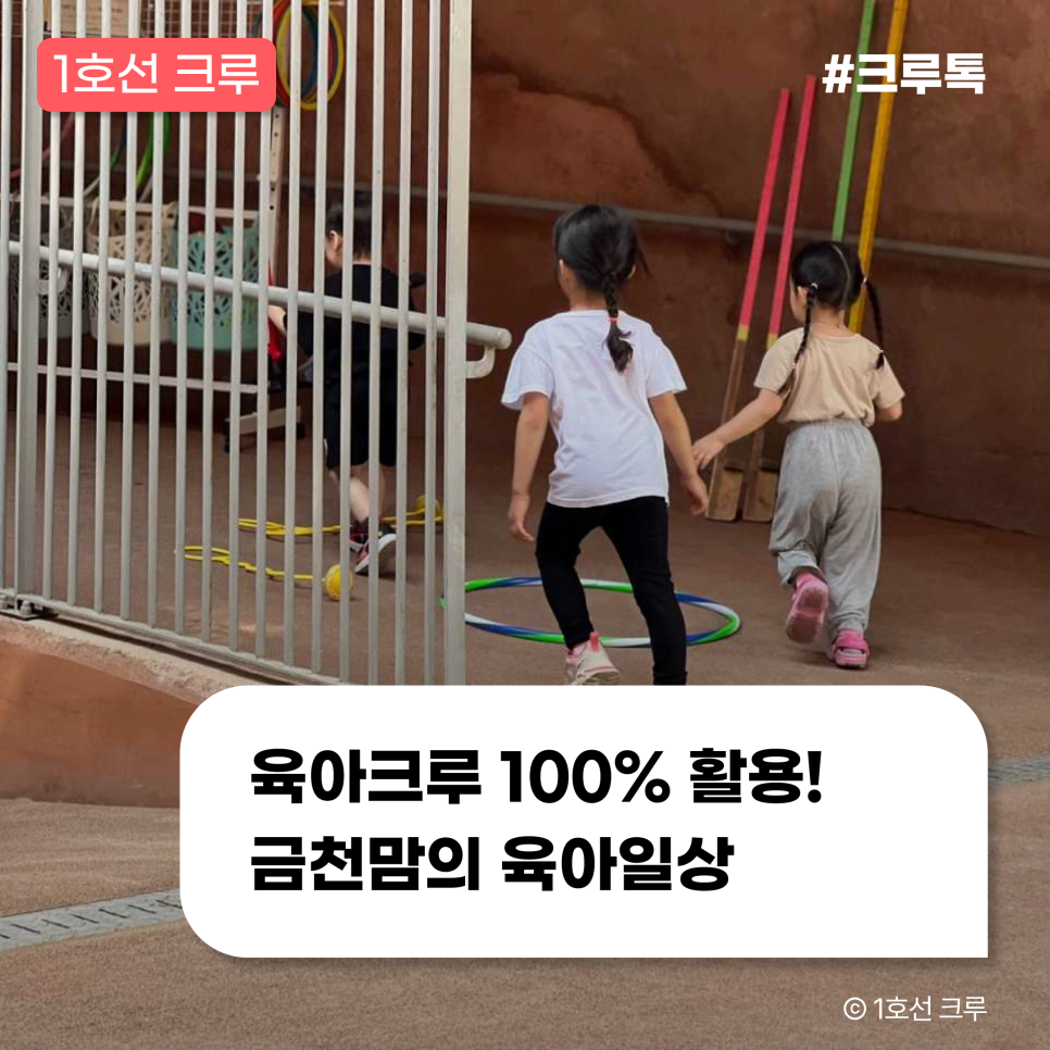 이번 이야기는 육아크루를 다양한 방법으로 잘 활용하며, 즐거운 육아일상을 보내고 계시는 1호선 크루님의 이야기입니다. 1호선 크루님은 육아크루의 동네정보 요정🧚♀️ 공룡언니🦕가 추천한 아이랑가볼만한곳 , 산마루 놀이터에 다녀오신 적도 있는데요! 👉1호선 크루님이 다녀온 산마루 놀이터 후기(클릭) 육아크루의 추천하는 아이랑가볼만한곳 방문은 물론이고, 육아크루의 오프라인 행사에도 아이랑 활발하게 참여하며 육아일상을 더욱 즐겁게 보내시는 1호선 크루님의 이야기를 지금 만나보아요!