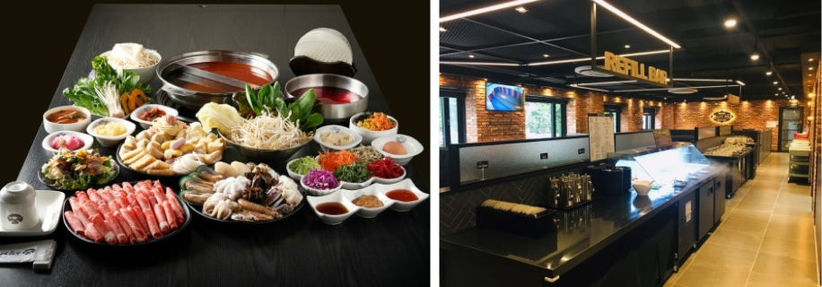 샤브샤브와 월남쌈에 들어가는 채소는 리필바를 통해서 가져다 먹을 수 있고, 내가 원하는 재료를 넣어 월남쌈을 만들어 먹을 수 있기 때문에 아이도 더욱 즐거운 식사시간을 보낼 수 있어 추천하고 싶어요. 샤브샤브에 들어가는 각종 사리도 리필바에 준비가 되어 있다고 해요.