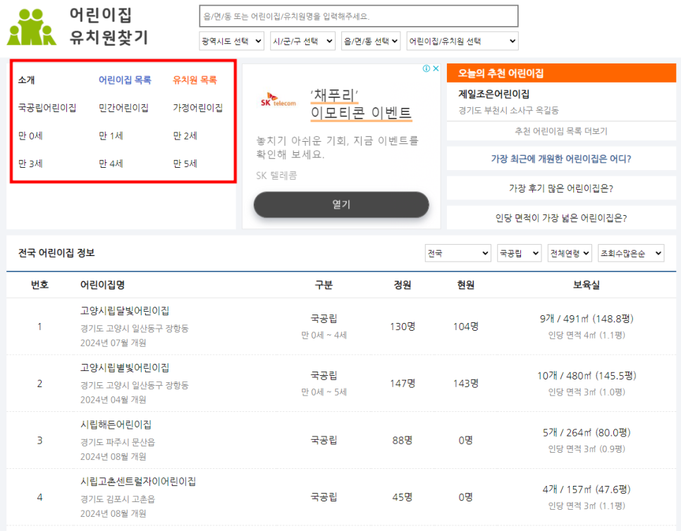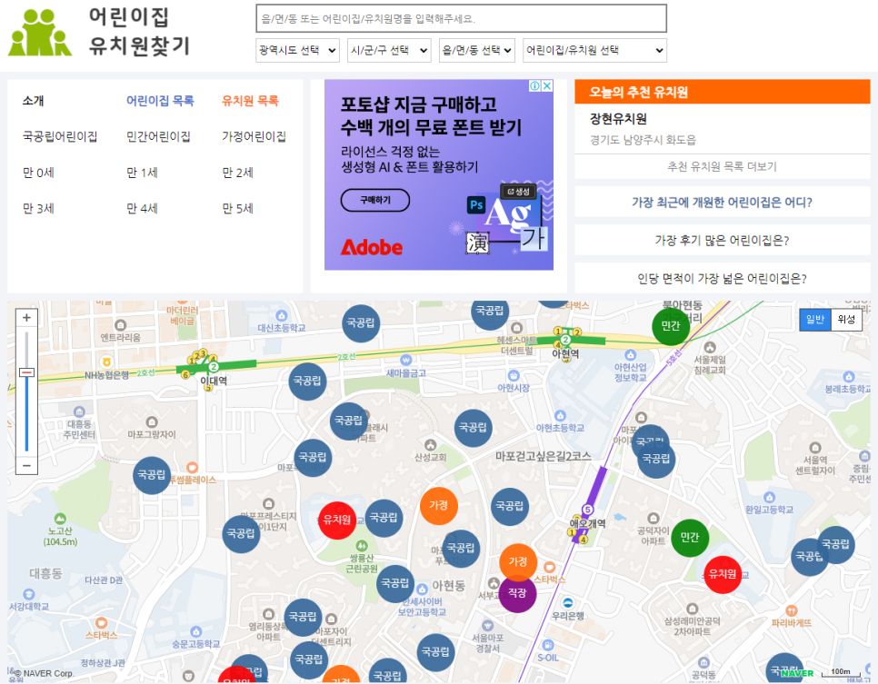 먼저 어린이집/유치원 정보를 볼 수 있는 사이트를 먼저 소개해보겠습니다.