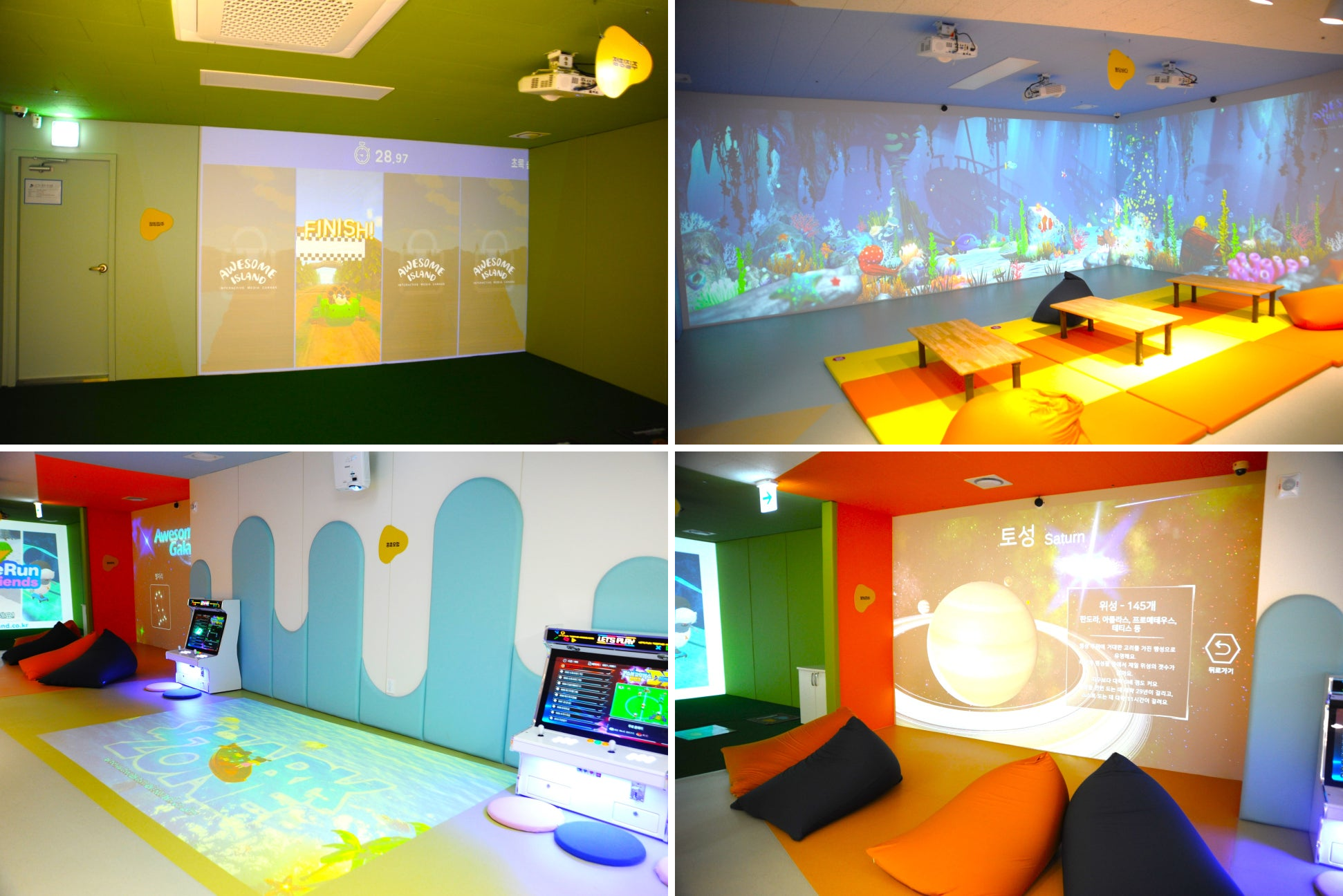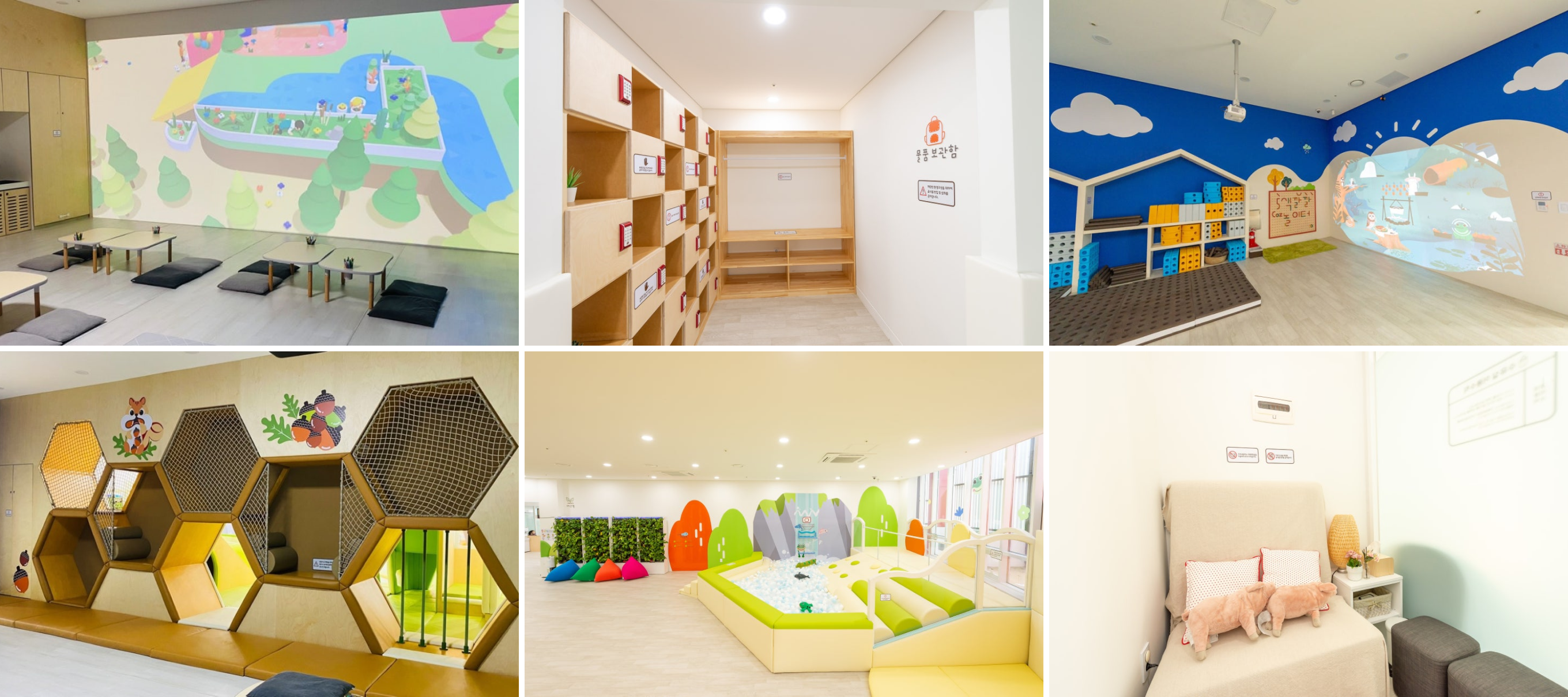 이곳은 장애물을 통과하거나 그물 다리를 건너는 등 신체를 발달할 수 있는 놀이공간과 아이가 그린 그림이 미디어에서 움직이는 것을 볼 수 있는 공간 등 다양한 놀이 공간으로 구성되어 있는데요! 옷과 가방을 보관할 수 있는 물품 보관실과 어린아이들을 위한 수유실까지 있어 어린아이들과 함께 방문할 경우 편하게 이용할 수 있답니다~