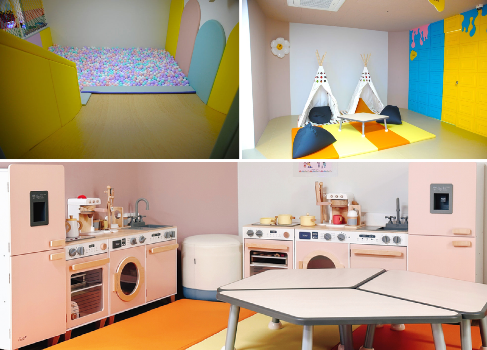 게다가 미끄럼틀이 있는 볼풀장, 역할놀이 공간과 다락방 등이 있어 아이들이 이곳에 앉아 쉬기도 하고 보드게임도 하며 다양한 활동을 할 수 있답니다.